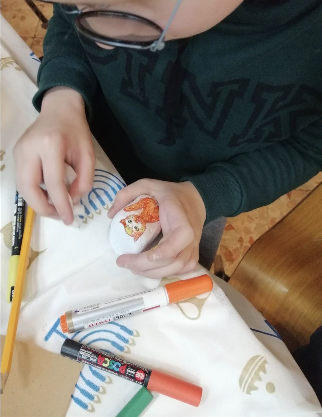 אימון אבן זוהר- קלף וחלוק נחל מצוייר